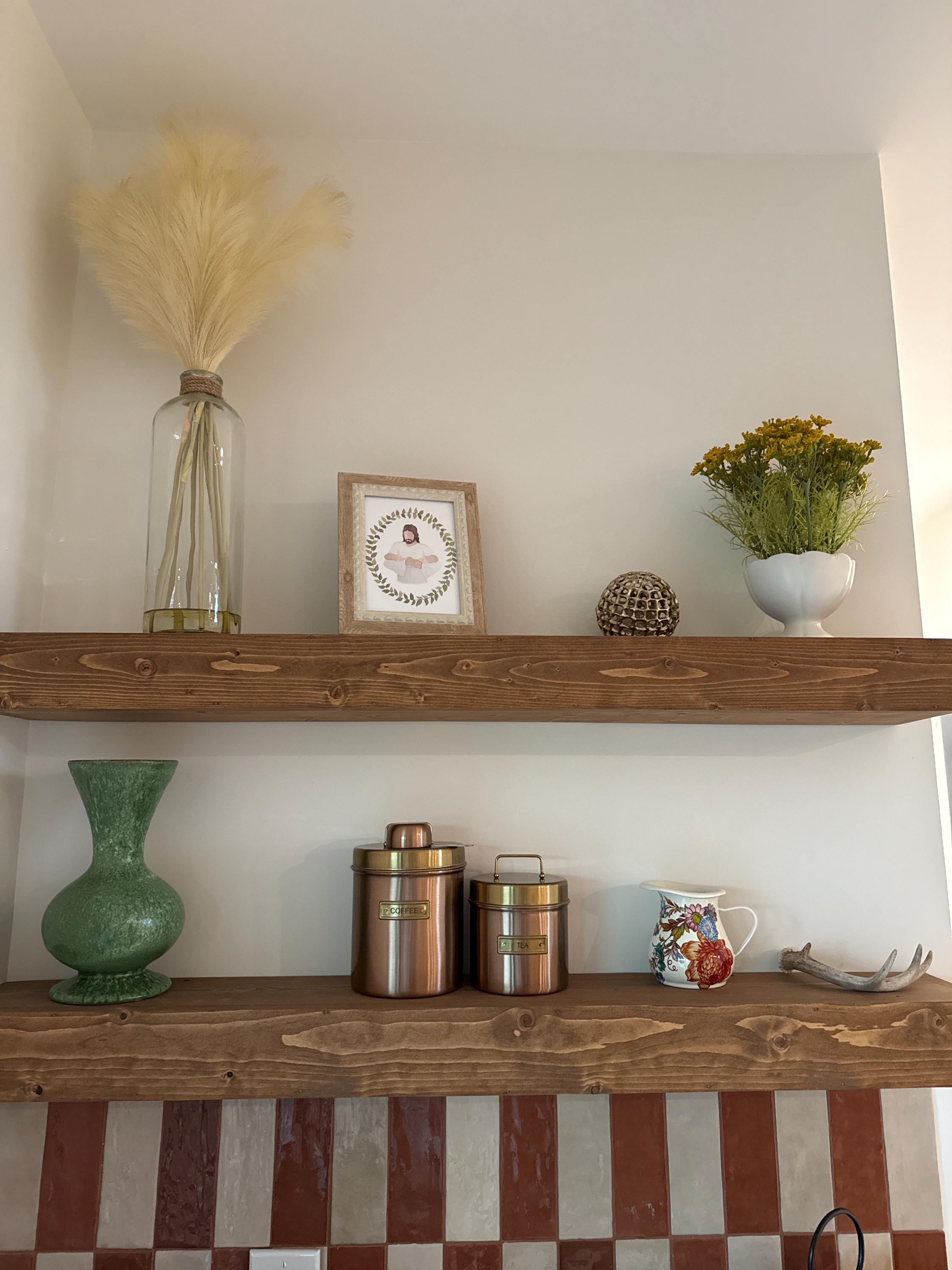 Our handmade floating shelves are the perfect combination of form and function. Whether you're looking to add storage space to your kitchen, display family photos in your living room, or create a unique look in your bedroom, our shelves are the perfect solution.